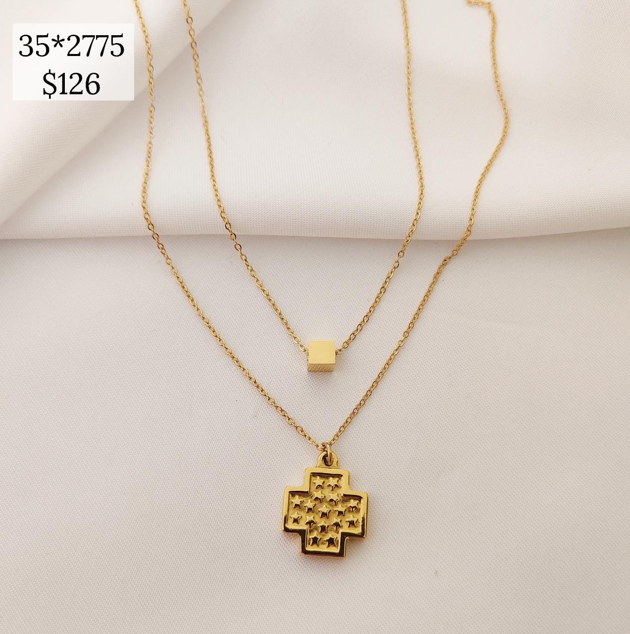 COLLAR DOBLE CUBO Y CRUZ ANCHA