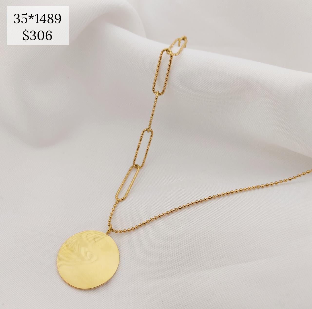 COLLAR DOBLE, DIJE CIRCULO TIPO CORBATERO