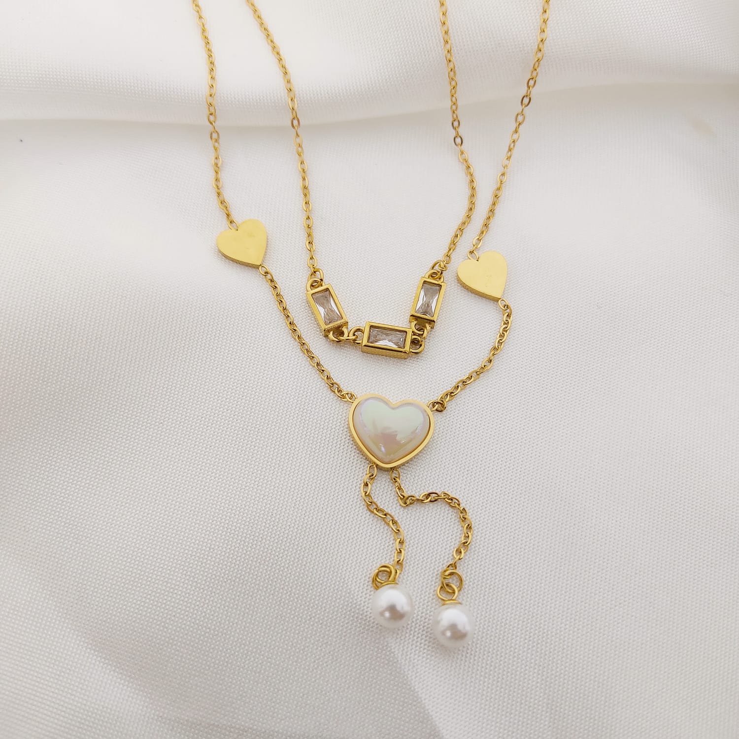 COLLAR DOBLE DIJE CORAZ?N INFLADO ACRILICO