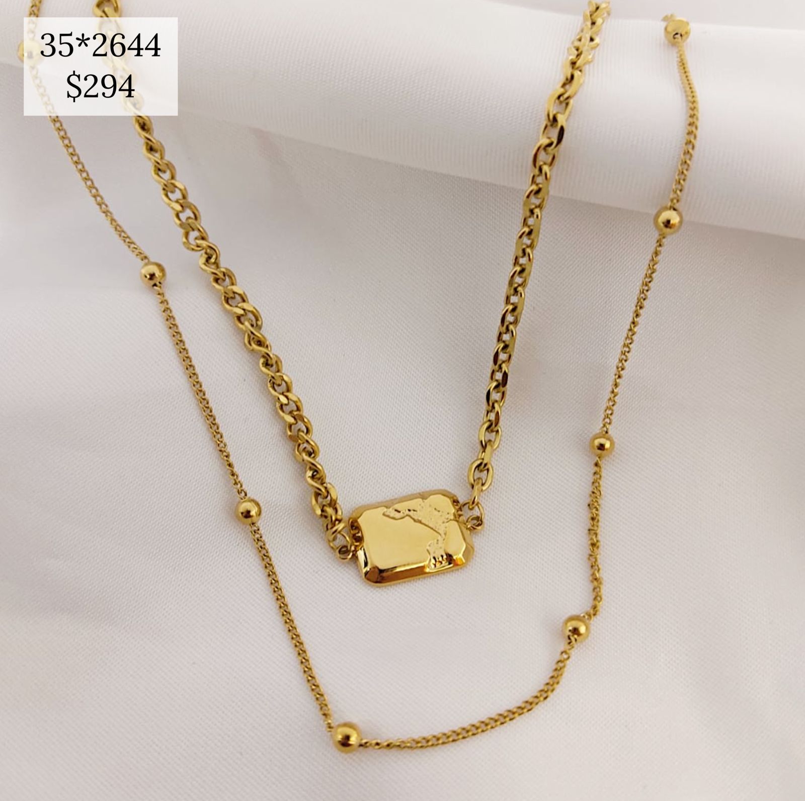 COLLAR DOBLE DIJE CUADRO MARCADO
