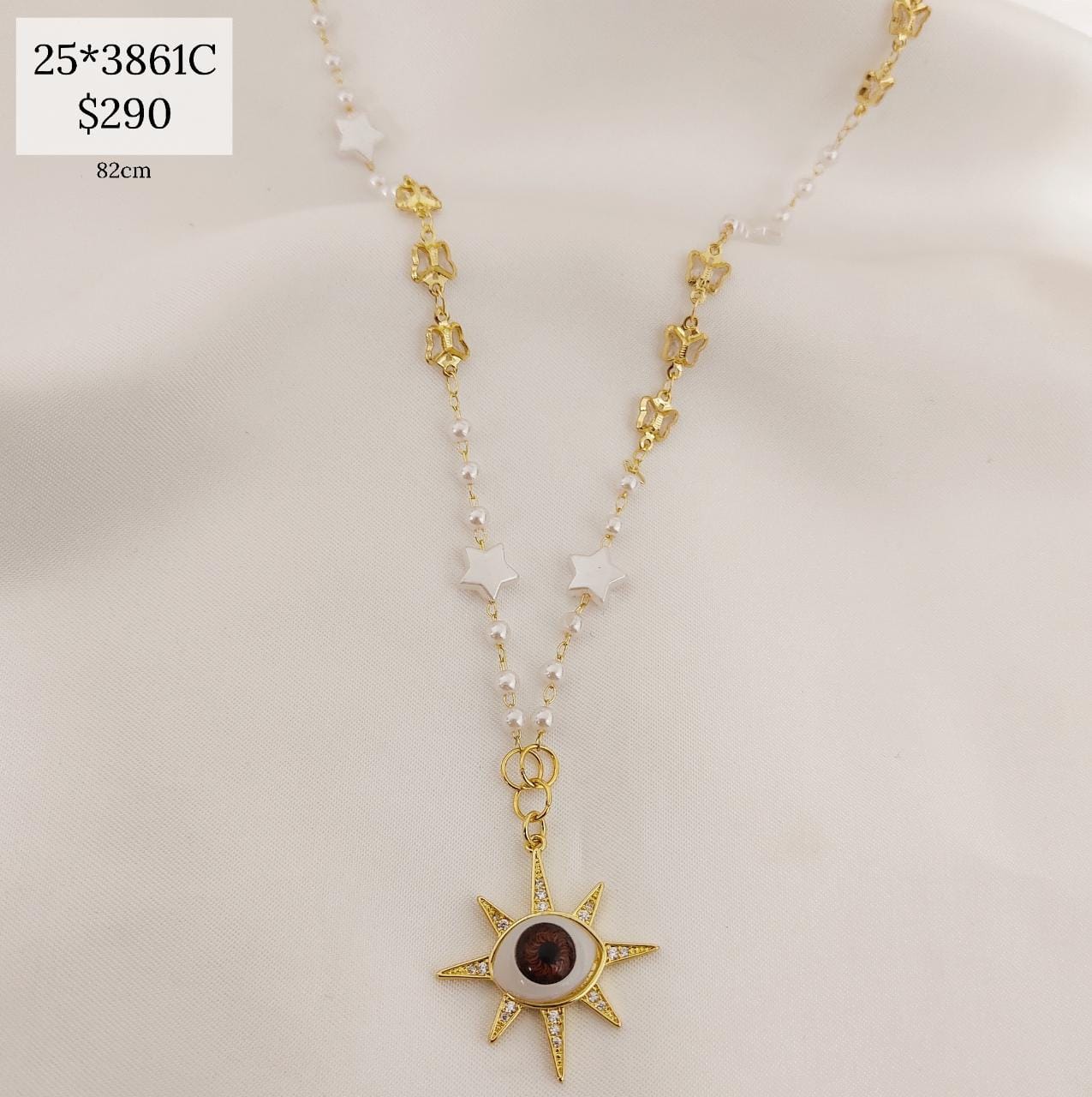 COLLAR PERLA DIJE ESTRELLA CON OJO SALTON