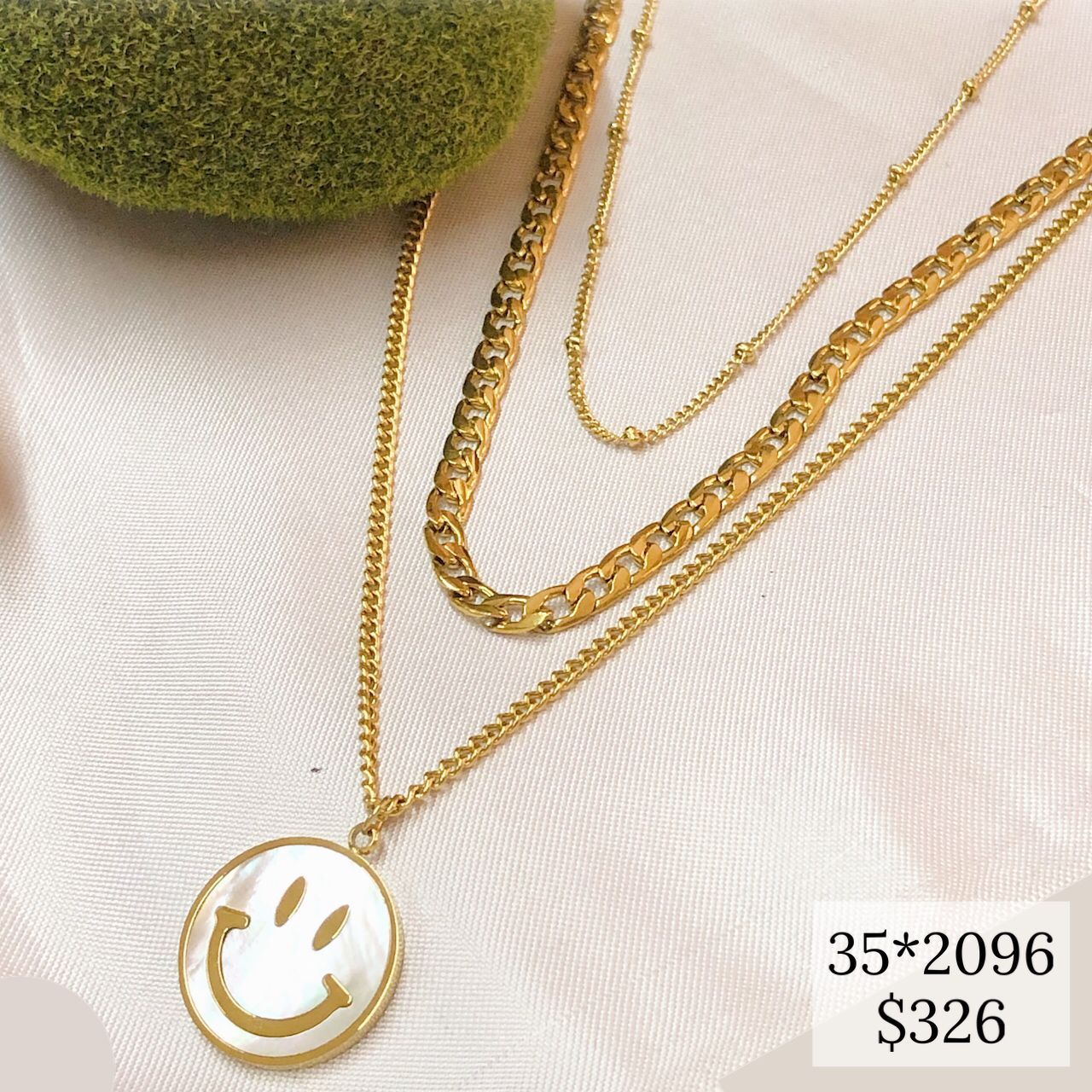 COLLAR TRIPLE DIJE CARITA FELIZ MADRE PERLA