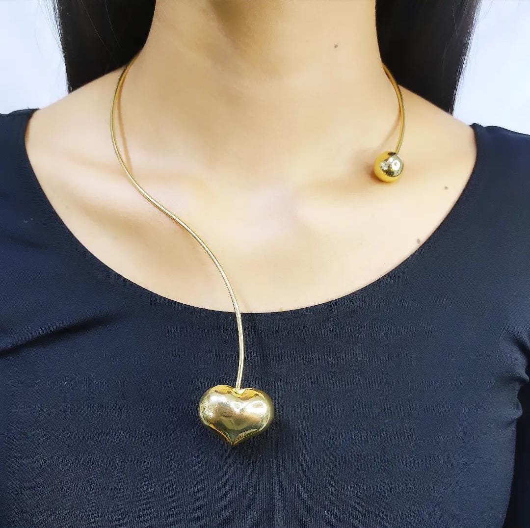 GARGANTILLA ALAMBRE EN S PUNTA BOLA Y PUNTA LARGA CORAZON BOMBEADO