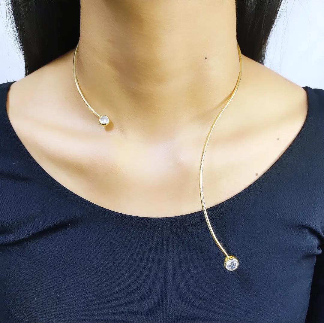 GARGANTILLA ALAMBRE EN S PUNTA CIRCONIAS CON LADO LARGO