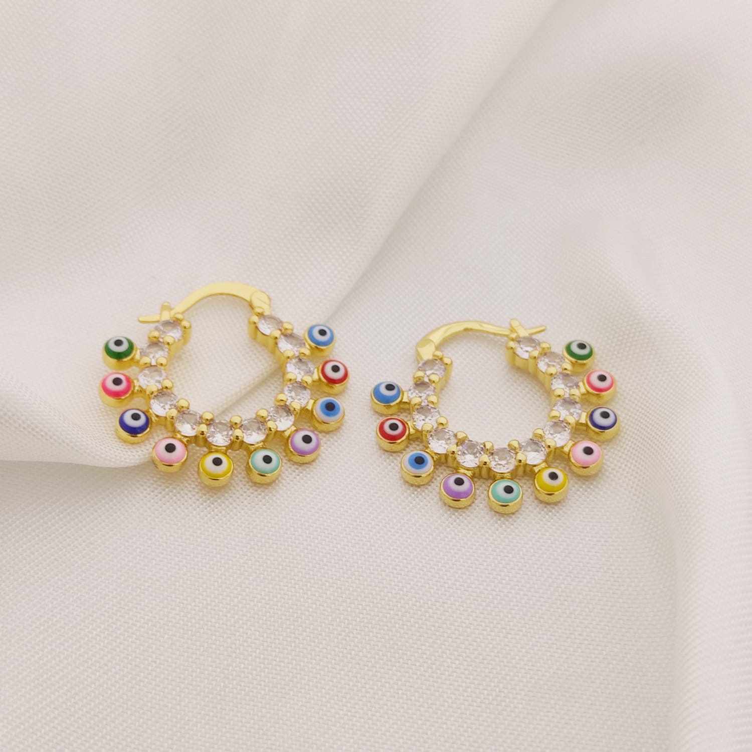 HUGGIE CIRCONIAS CON PUNTAS DE OJITO ROJO