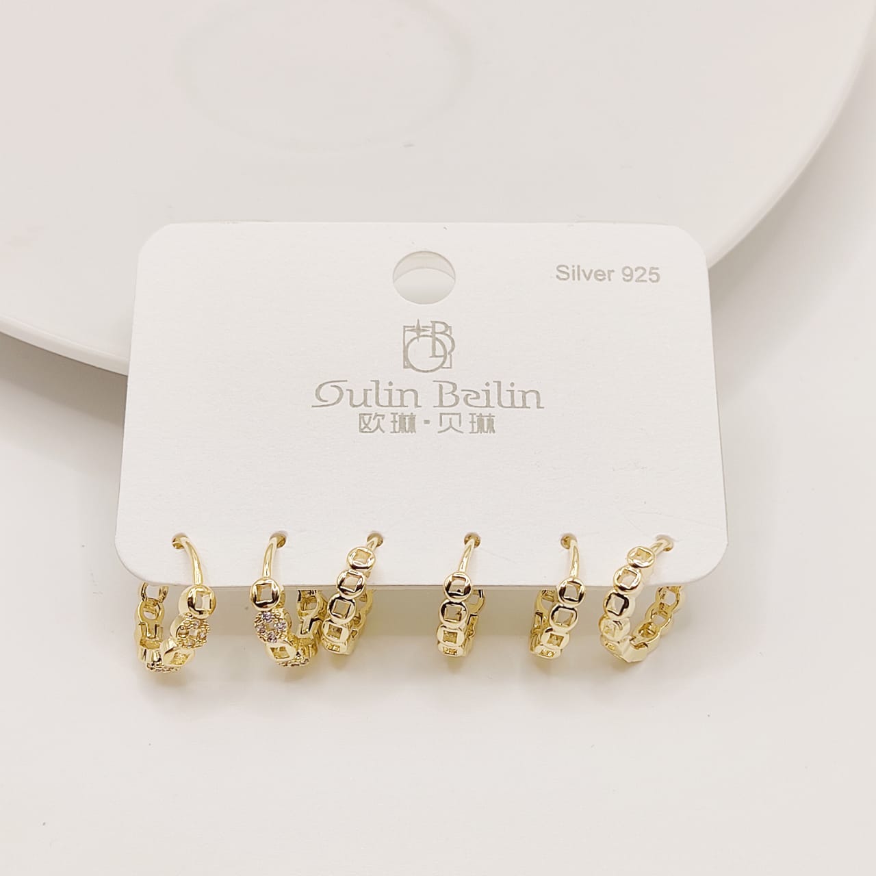KIT 3 ARRACADAS ENGRANES CUADRITO