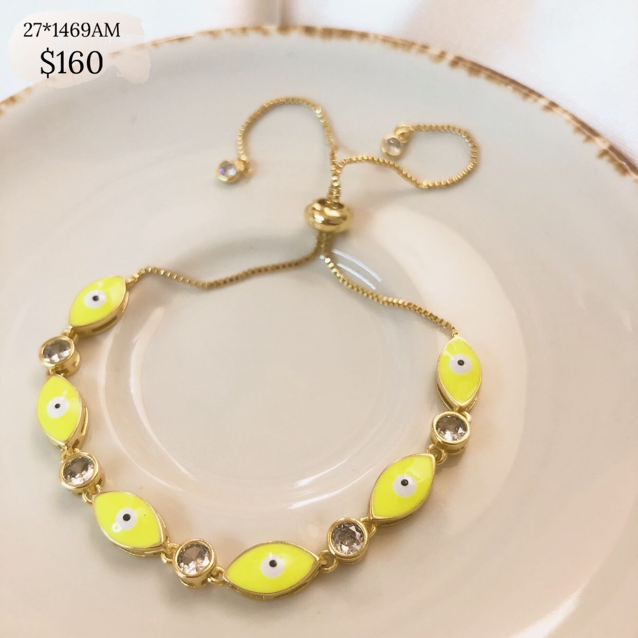 PULCERAS OJOS CZ AJUSTABLE AMARILLO