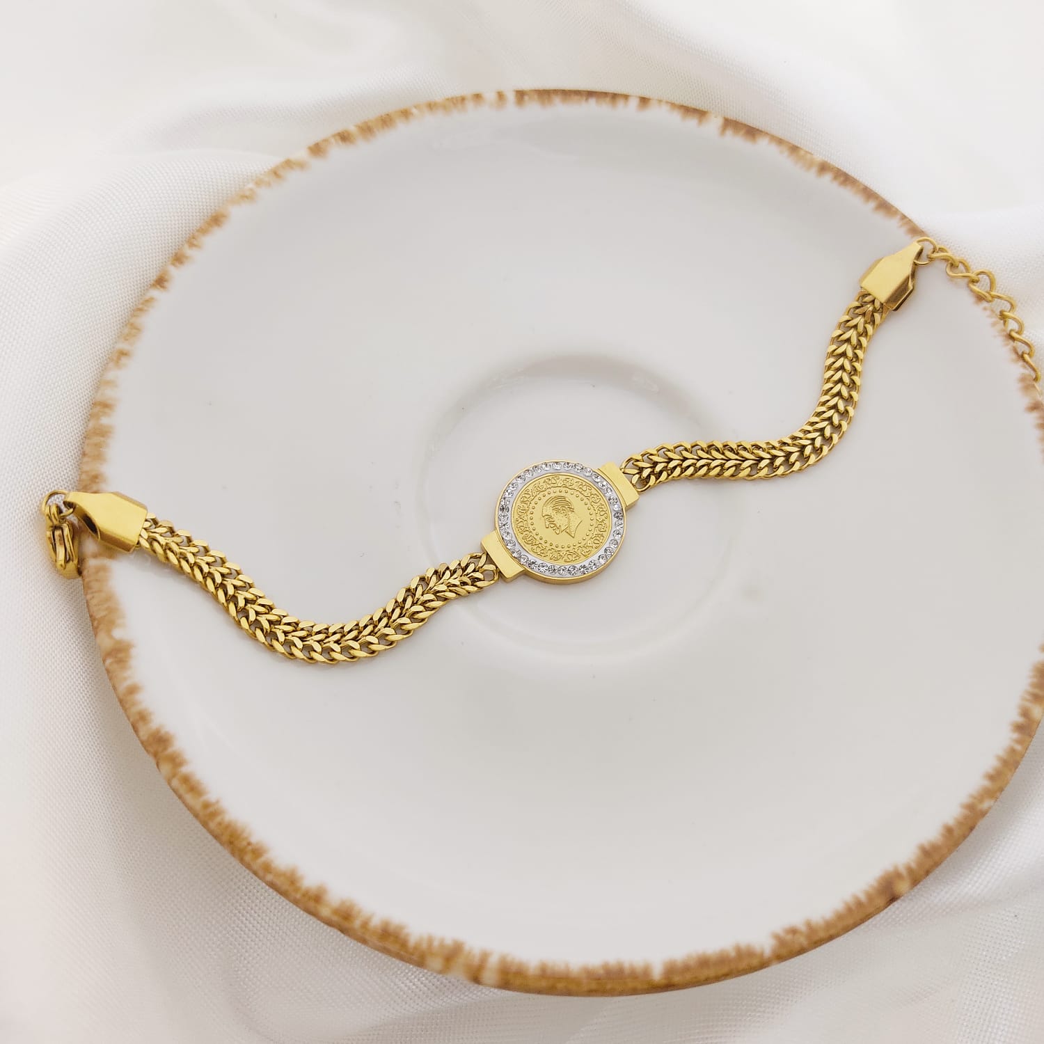 PULSERA EXTENSIBLE CADENA DIJE MONEDA CON CZ