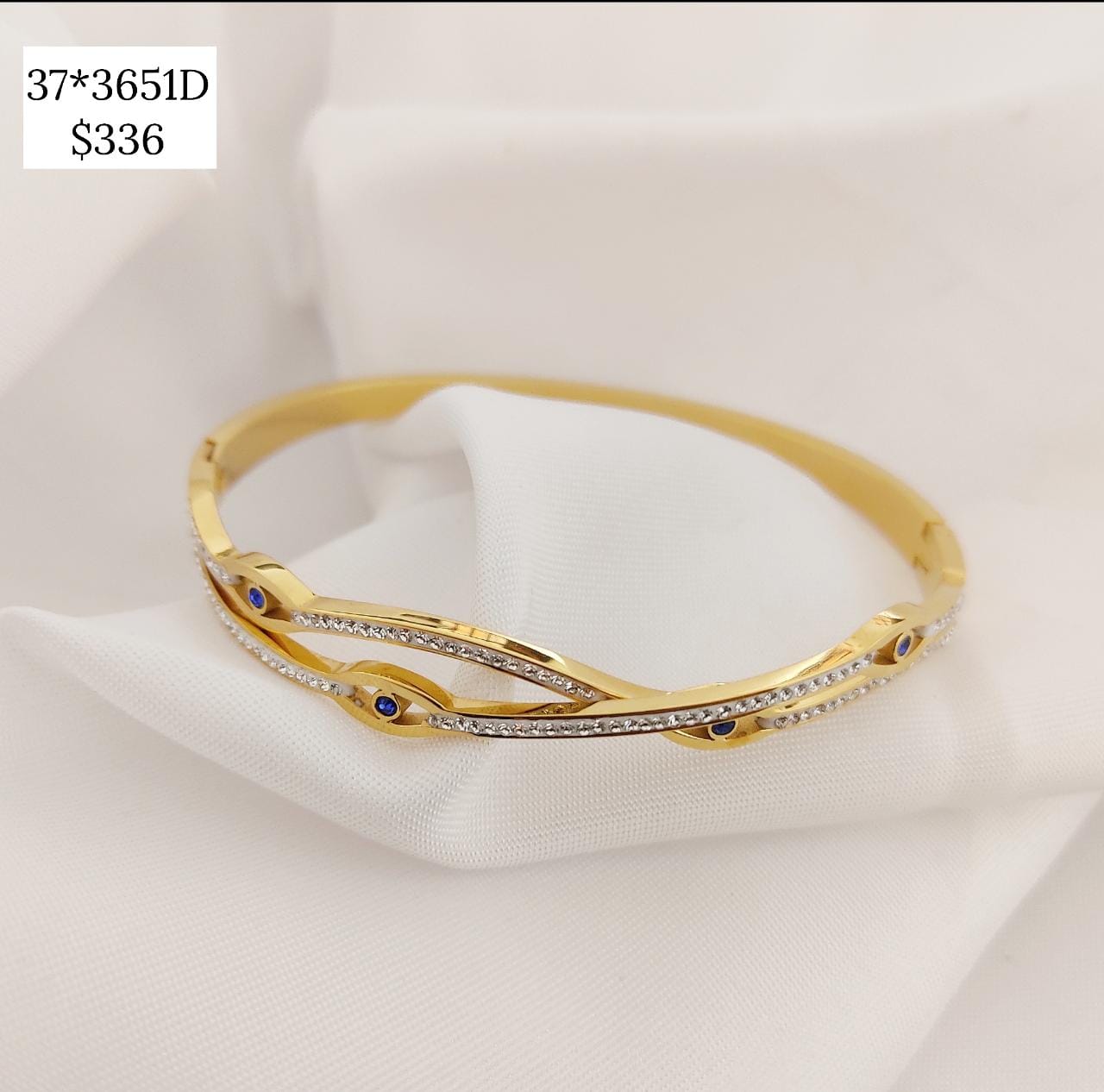 PULSO ARO DOS LINEAS ENTRELAZADAS CON OJOS Y CRISTALES
