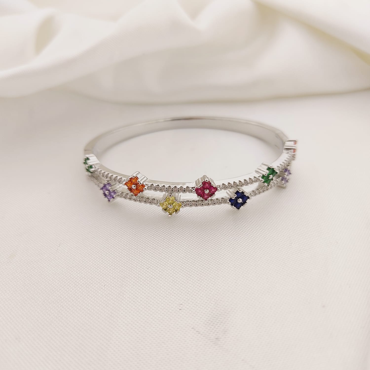 PULSO AROS RIGIDOS PAVE CON FLORES CZ COLORES