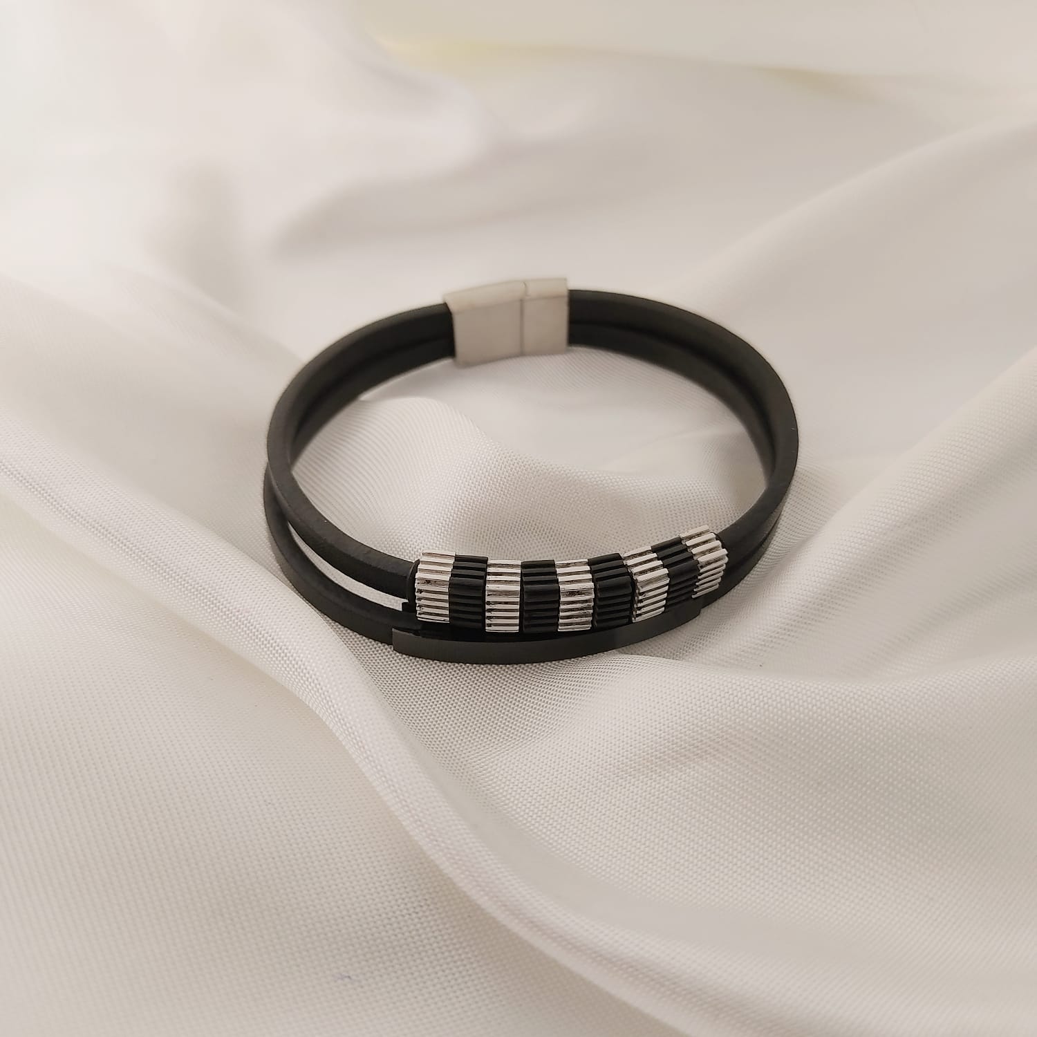 PULSO CABALLERO CON PLACA BICOLOR DE CUADROS