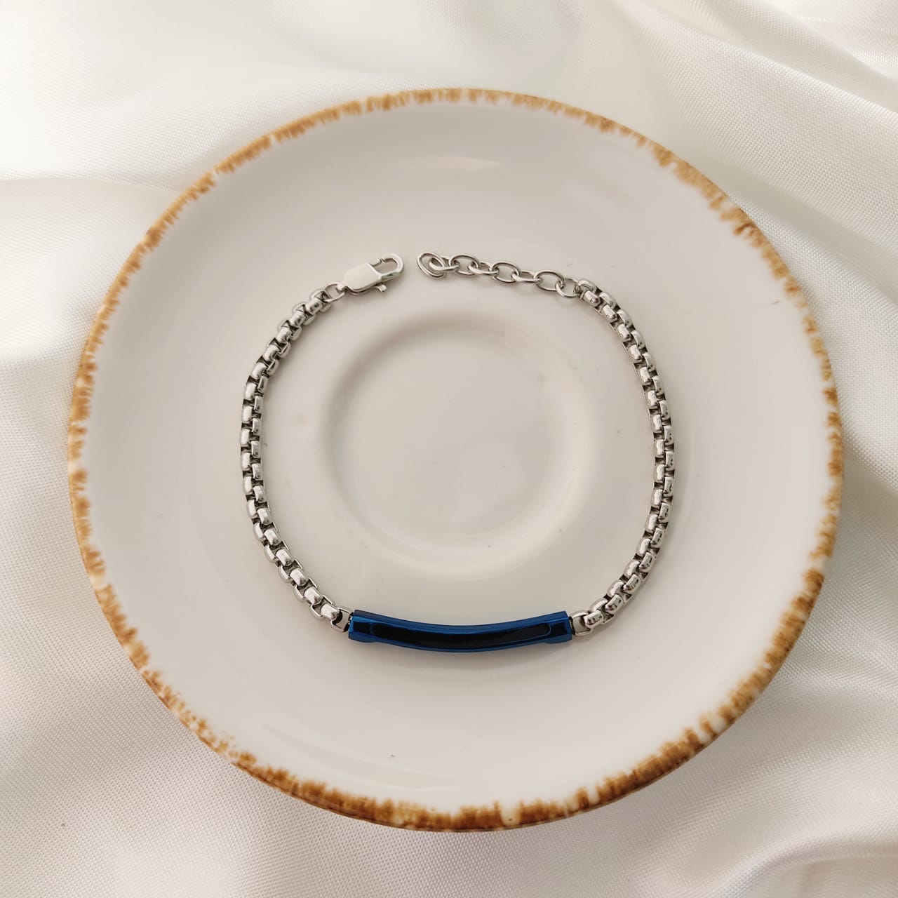 PULSO CABALLERO DE CADENA CON PLACA BI COLOR