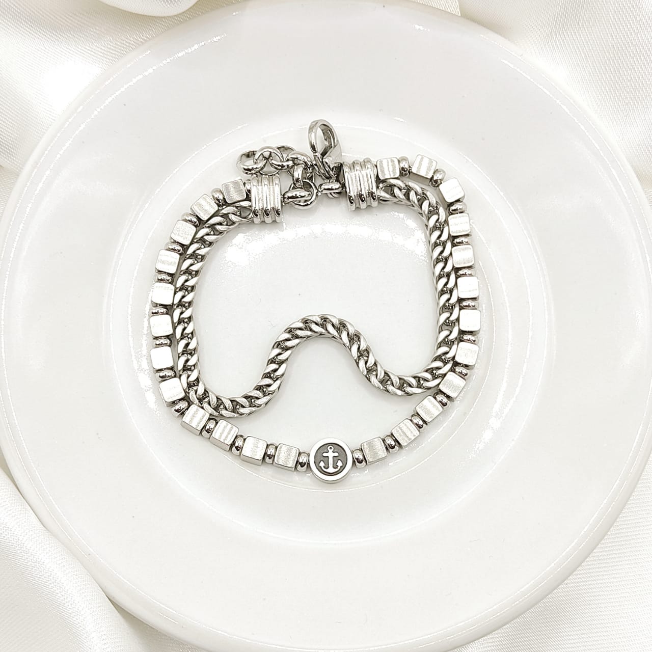 PULSO CADENA Y CUBITOS PIEDRA CON ANCLA CENTRO EN DISCO
