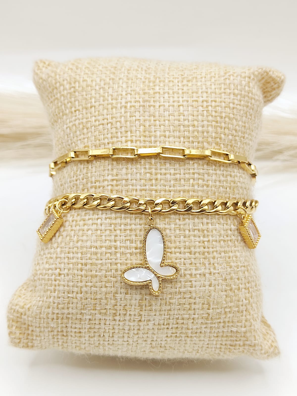 PULSO DOBLE CADENA DIJE MARIPOSA MO CZ RECT