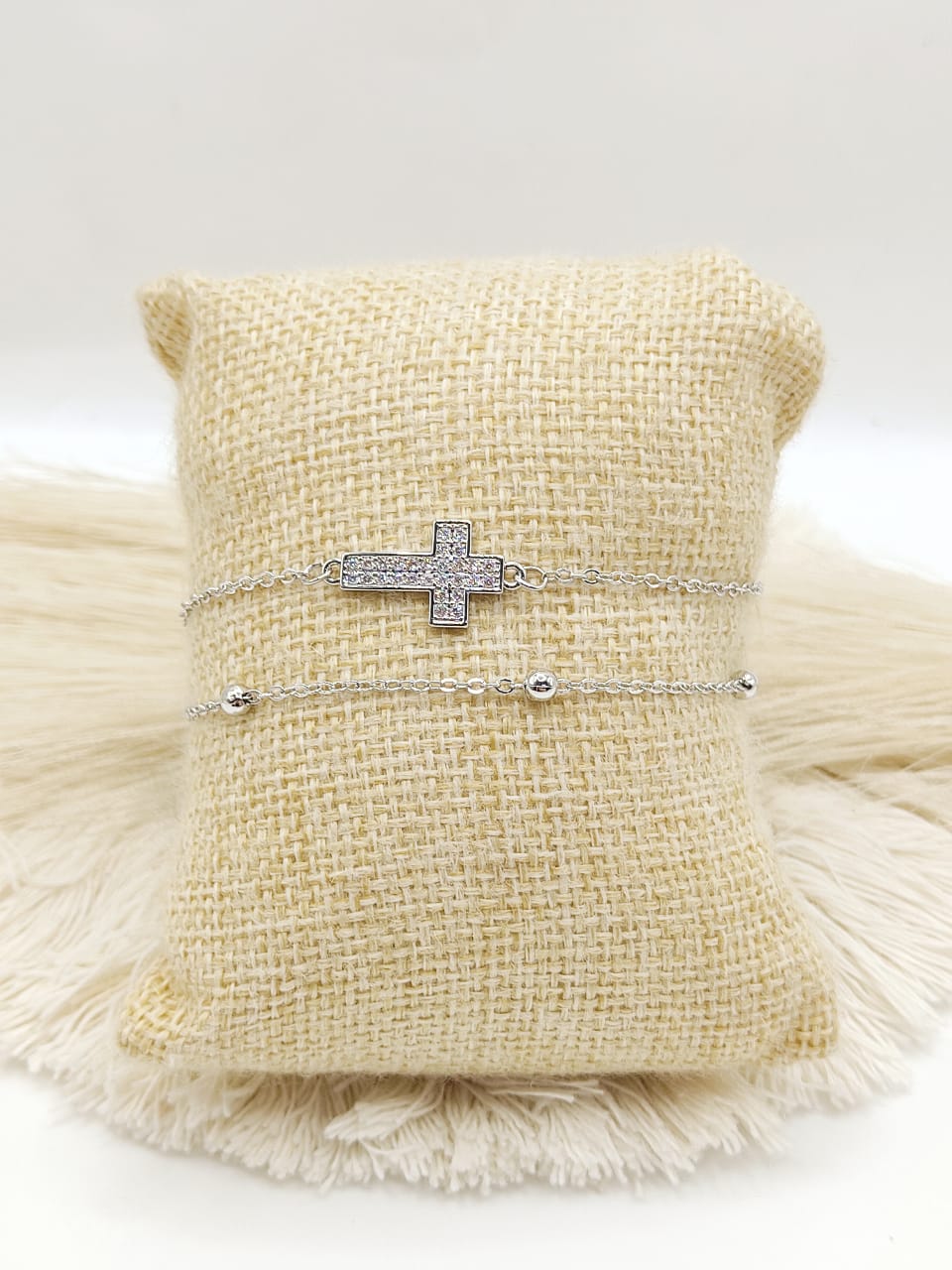 PULSO DOBLE CADENA DIJE PAVE CIRCONIA