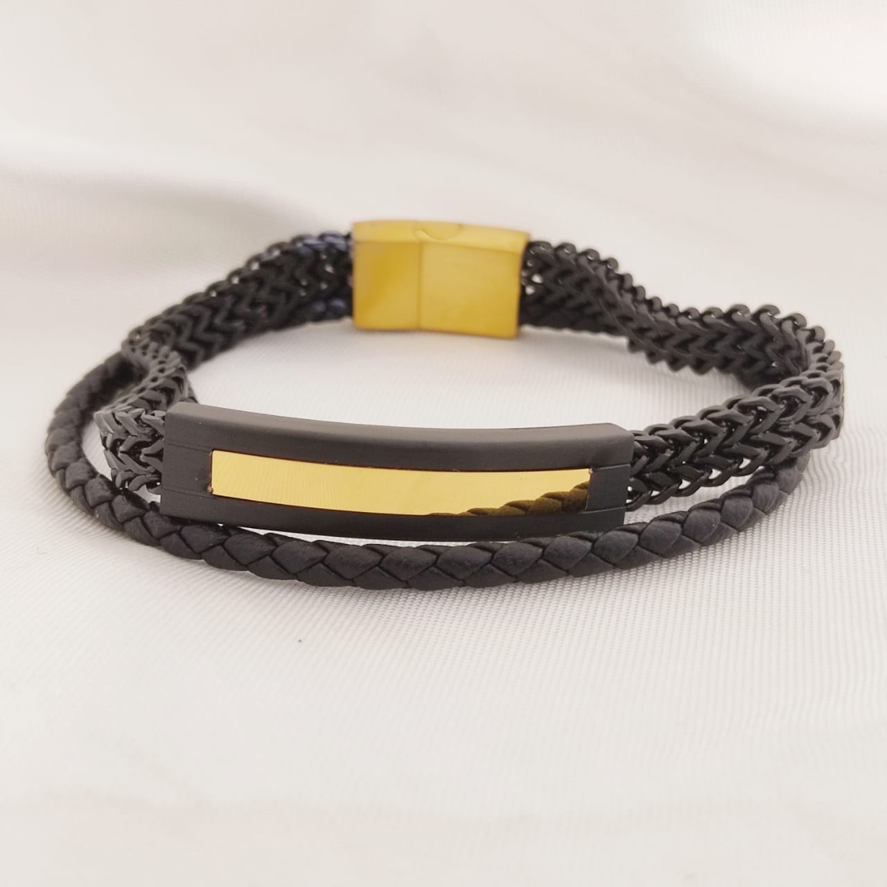 PULSO DOBLE CADENA Y TRENZADA BARRA LISA DOBLE