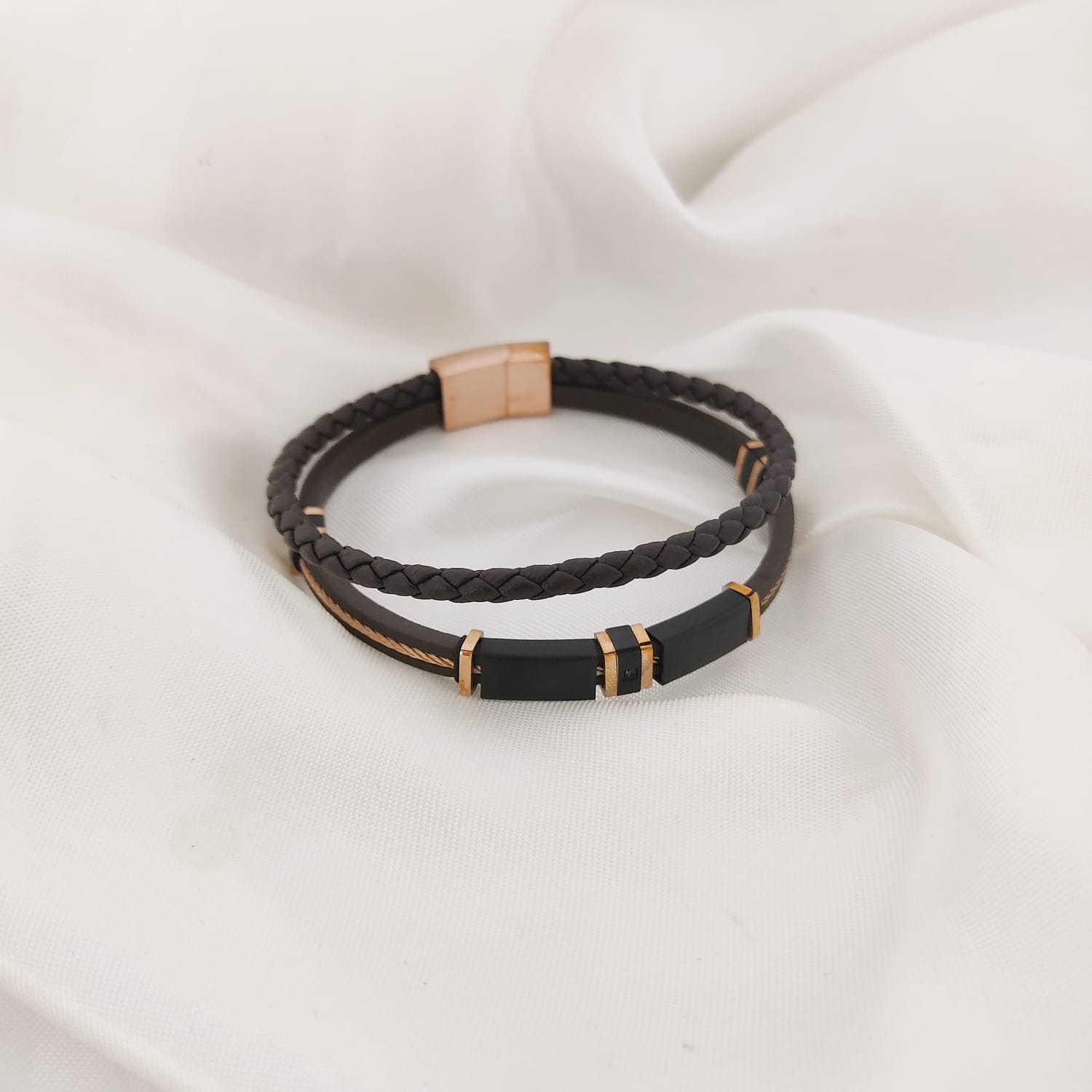 PULSO DOBLE CON LINEA DE ACERO AL CENTRO Y PLACA MULTI