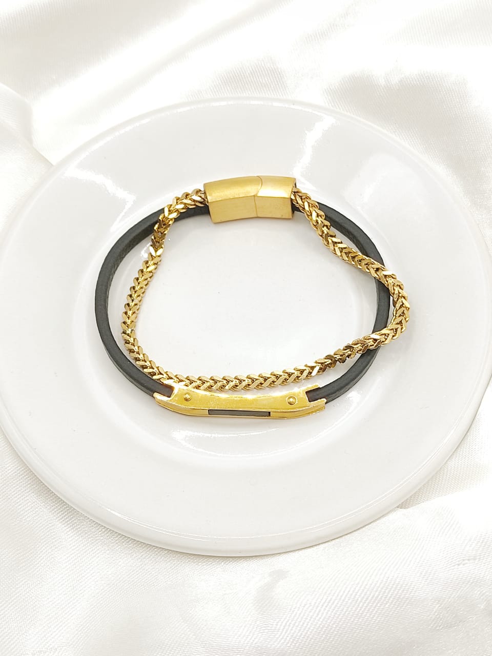 PULSO DOBLE , PIEL LISA CON BARRA, CADENA V