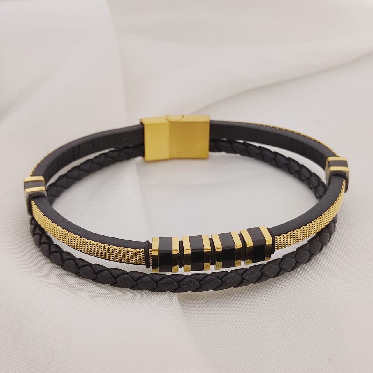 PULSO DOBLE,PIEL CON MALLA Y 4 RONDANAS CENTRO