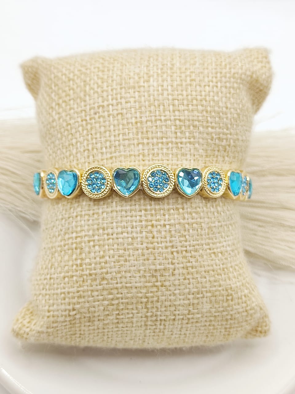 PULSO ELASTICO CZ DISCOS COLORES Y CORAZON RECTANGULO