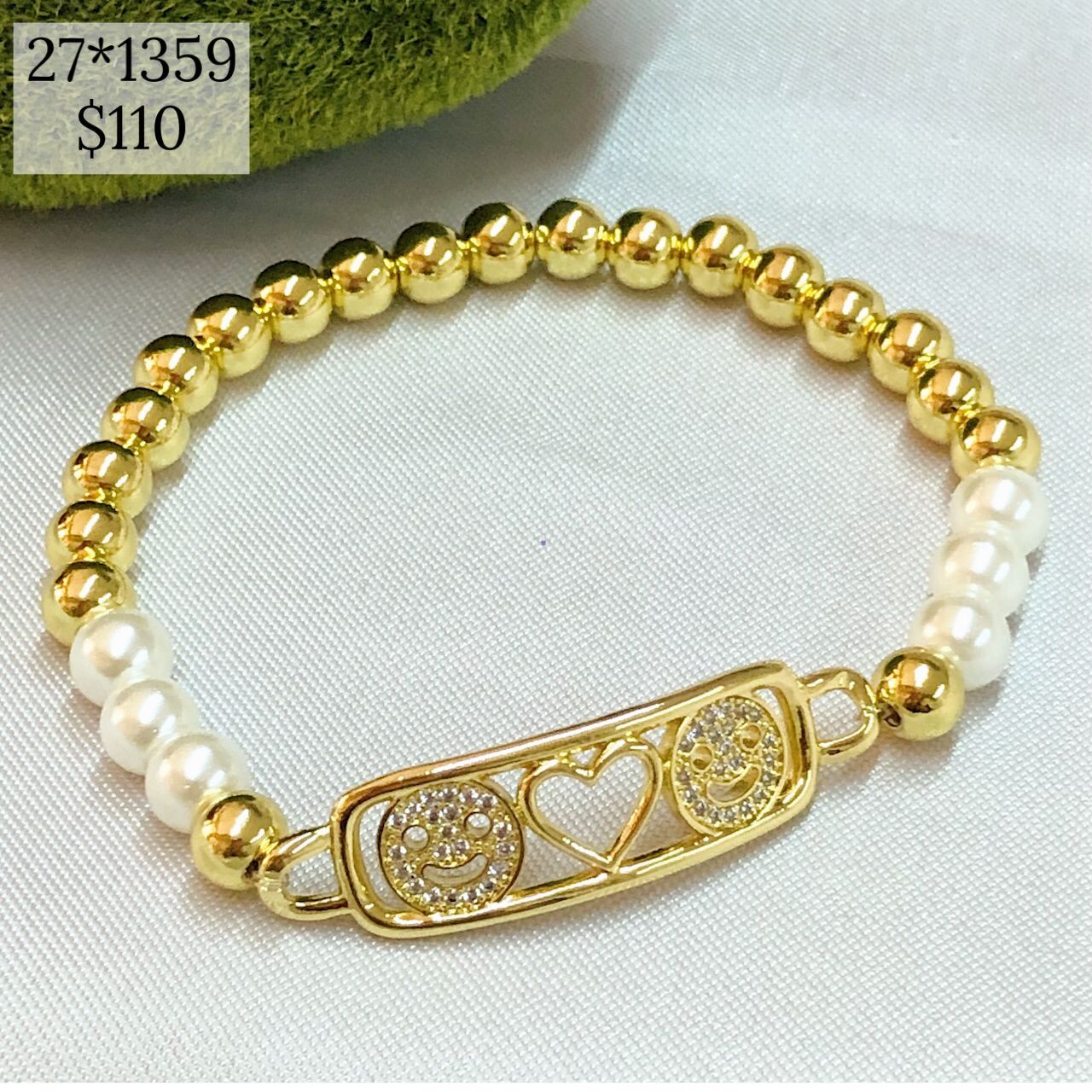 PULSO PERLA ELASTICO 2 CARA FELIZ BRILLO