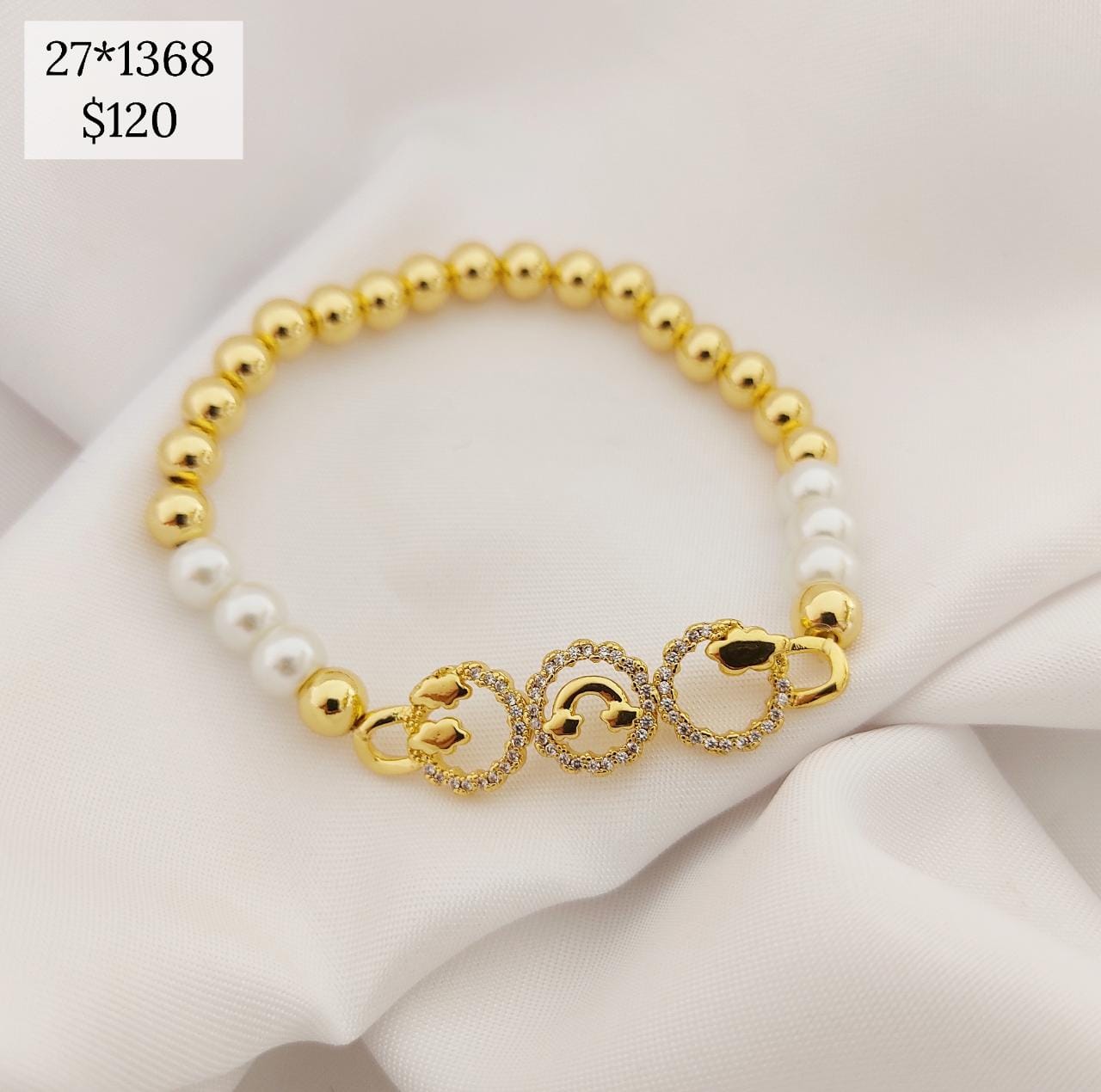 PULSO PERLA ELASTICO CIRCULO CON ARCOIRIS