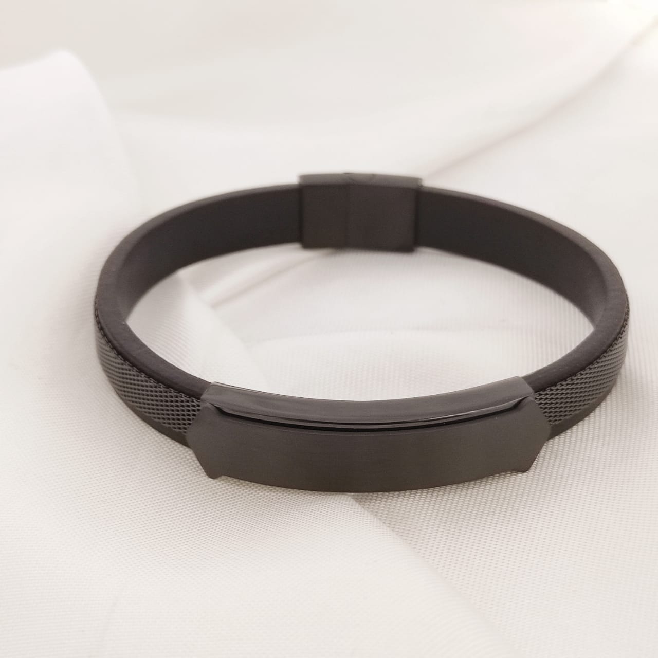 PULSO PIEL CON ACERO AL CENTRO Y PLACA