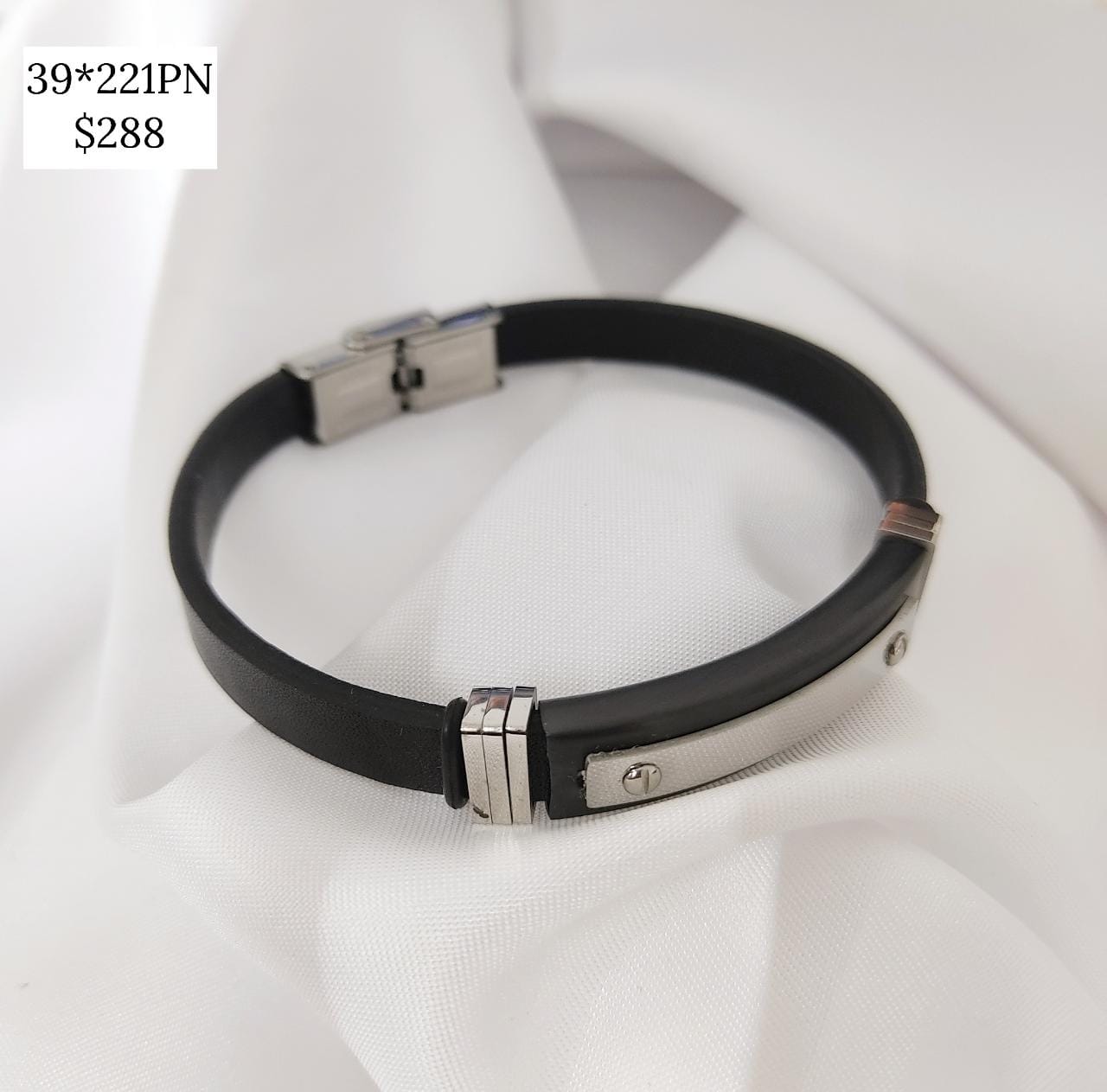 PULSO PIEL CON ACERO AL CENTRO Y PLACA
