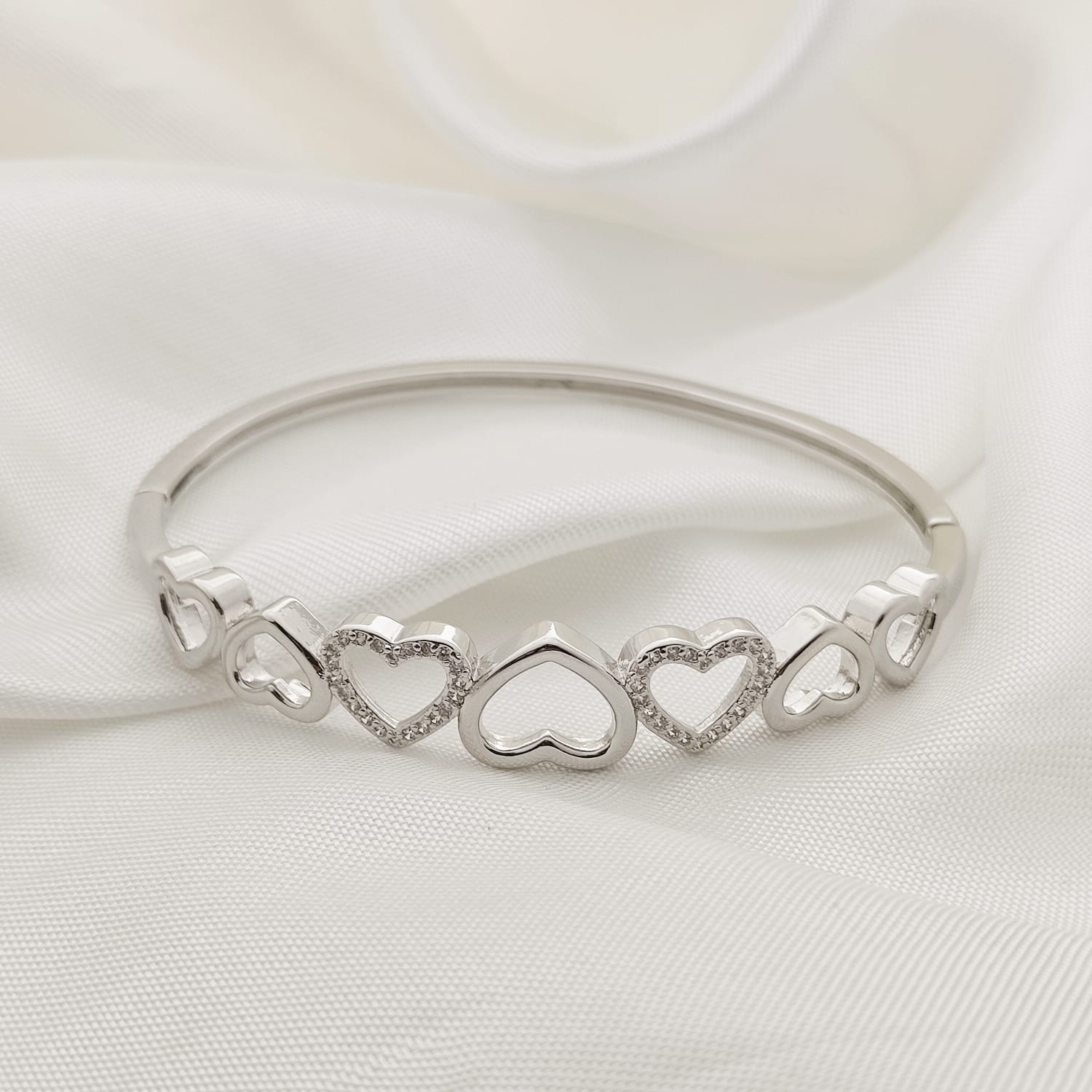 PULSO RIGIDO ARO DE CORAZONES ENCONTRADOS LISOS Y PAVE