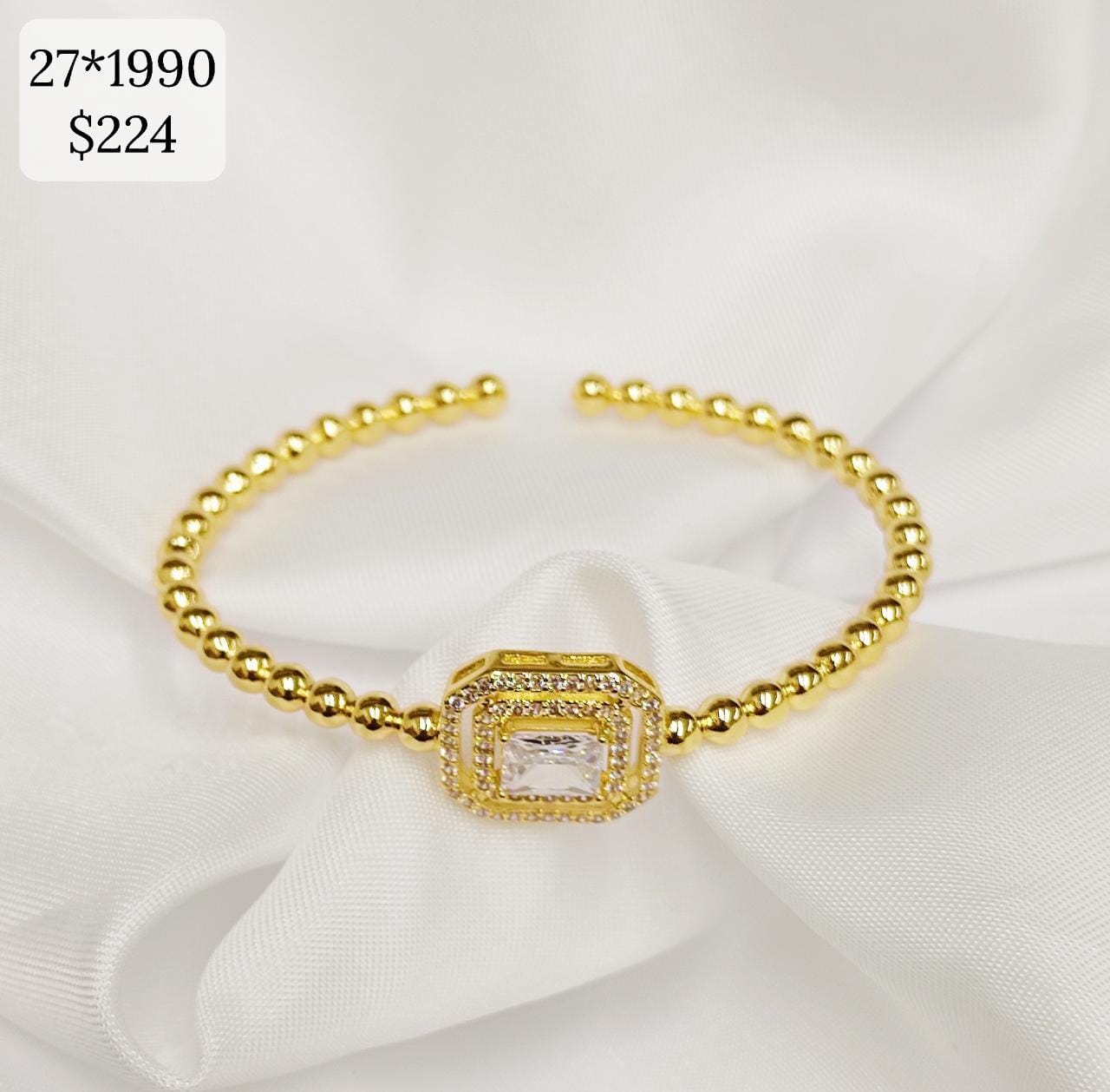 PULSO RIGIDO BOLITAS CIRCONIA RECTANGULAR