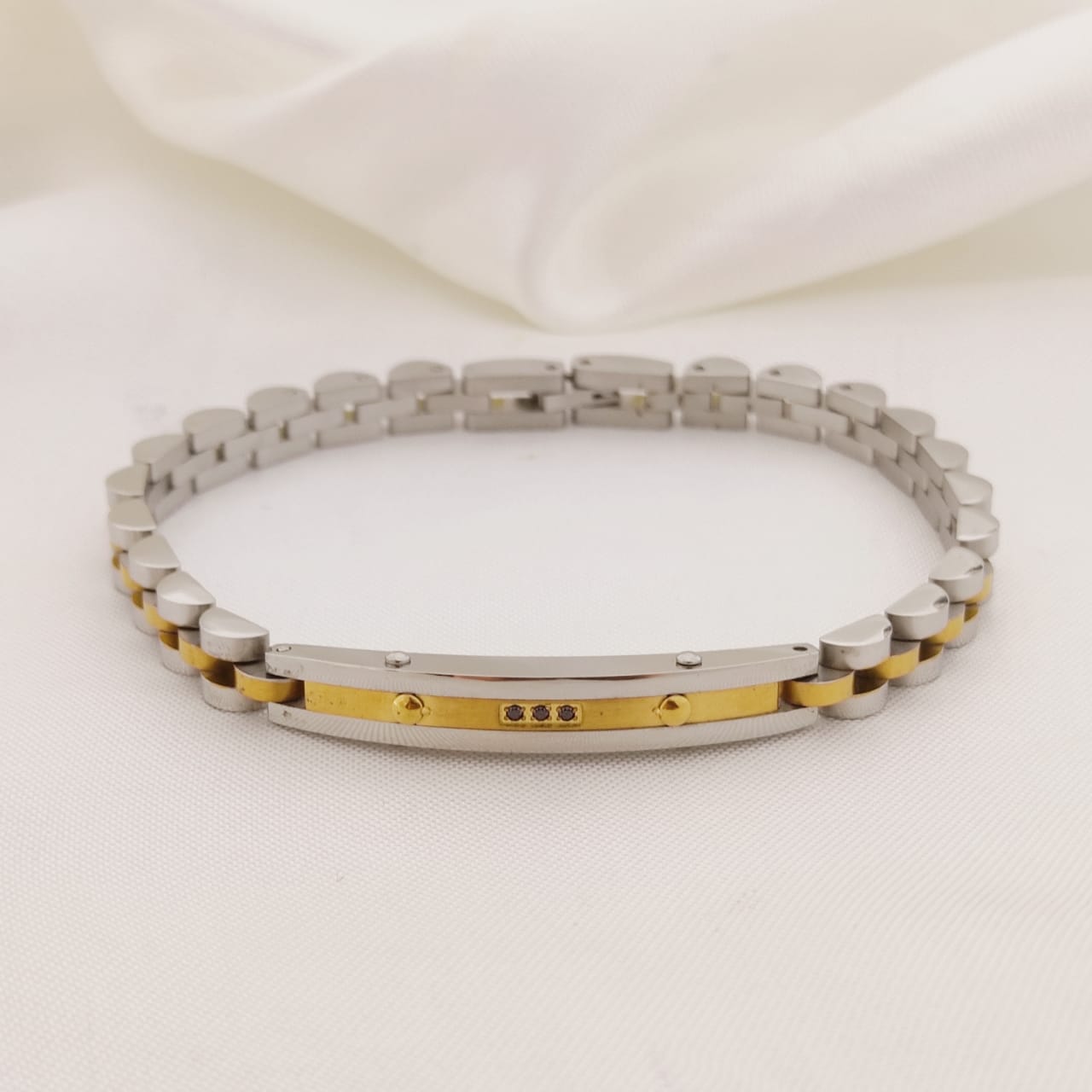 PULSO ROLEX PLACA CON LINEA Y 3 ZIRCONIAS