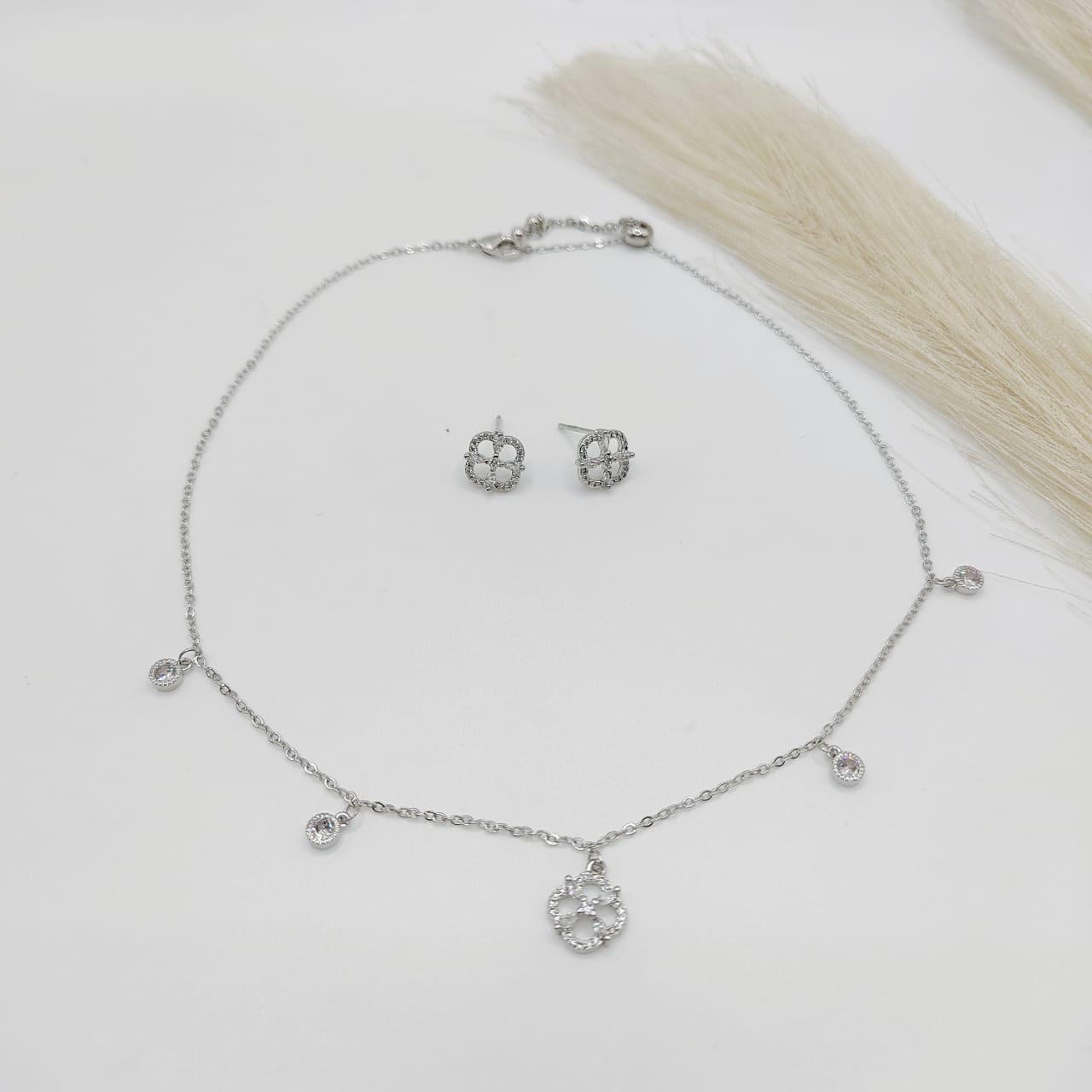 SET ARETE Y DIJE FLOR DIJES CZ REDONDA