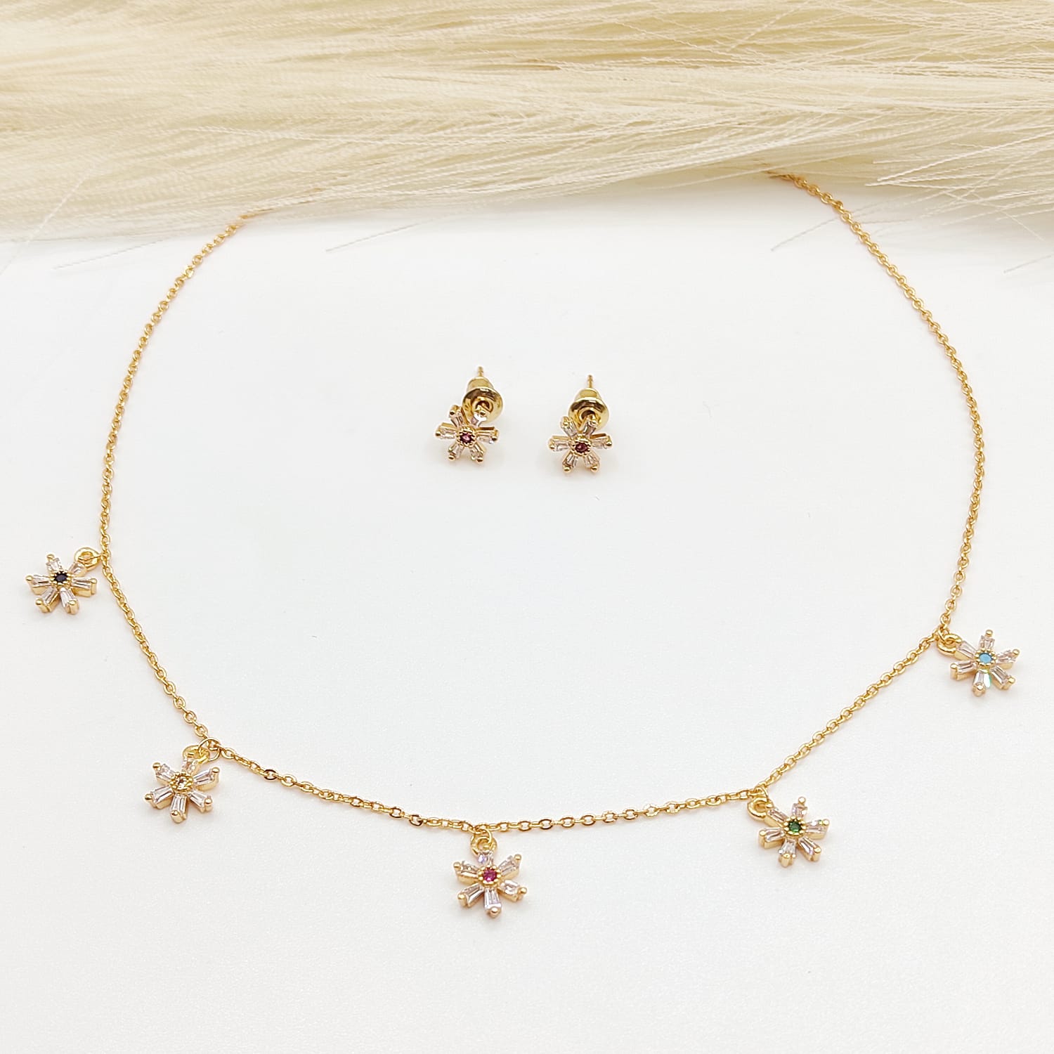 SET DIJES DE FLORES MINI CIRCONIAS CENTRO ROJO