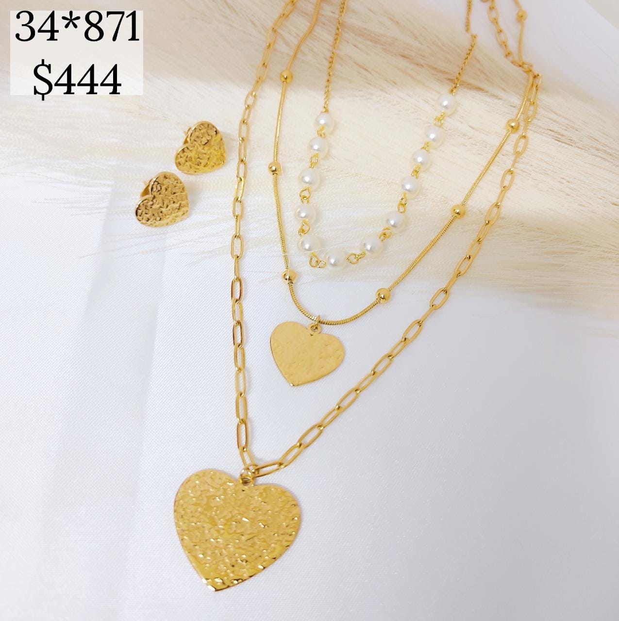 SET TRIPLE CORAZONES MARTILLADOS CON TRAMOS PERLA
